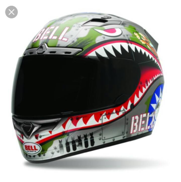Casco para motocicleta marca Bell. Americano. Talla M. Nuevo. Con dos viseras, una clara y otra obscura. Espectaculares gráficos. Precio charlable.